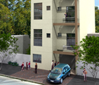 PB + 4 pisos. Monoambientes y 2 ambientes. Los de 2 ambientes tipo dúplex: cocina comedor con piso de porcelanatto y altos y bajos. 1 dormitorio en p.a. 1 baño. lavadero incorporado en cocina. Fachada estilo moderno con revestimiento plástico tipo Tarquini o revear balcones al fte con barandas de herrería metálica. las aventanamientos: grandes paños..